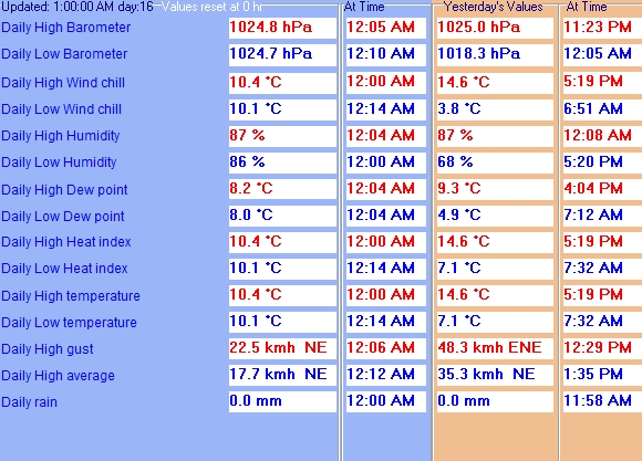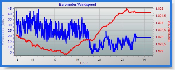 Barómetro / Velocidad del viento en las últimas 24 horas: